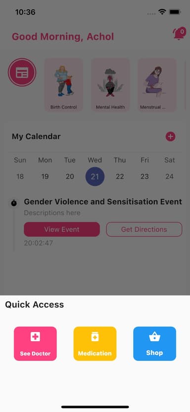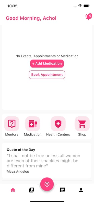 Womens Health and Wellness Platform to track medications, events, and provide mentorship services around East Africa. This project is a cross platform mobile application that i built from start to finish in collaboration with a PM and several NGO consultants